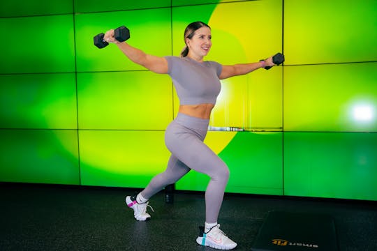 - Implementos: Mancuernas, barra, step y colchoneta.Recomendaciones: hidratación y toalla
